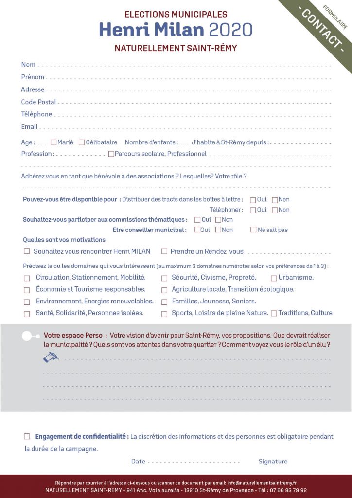 Vous pouvez télécharger notre formulaire contact, le compléter et nous le renvoyer par courrier ou scanner par email : info@naturellementsaintremy.fr